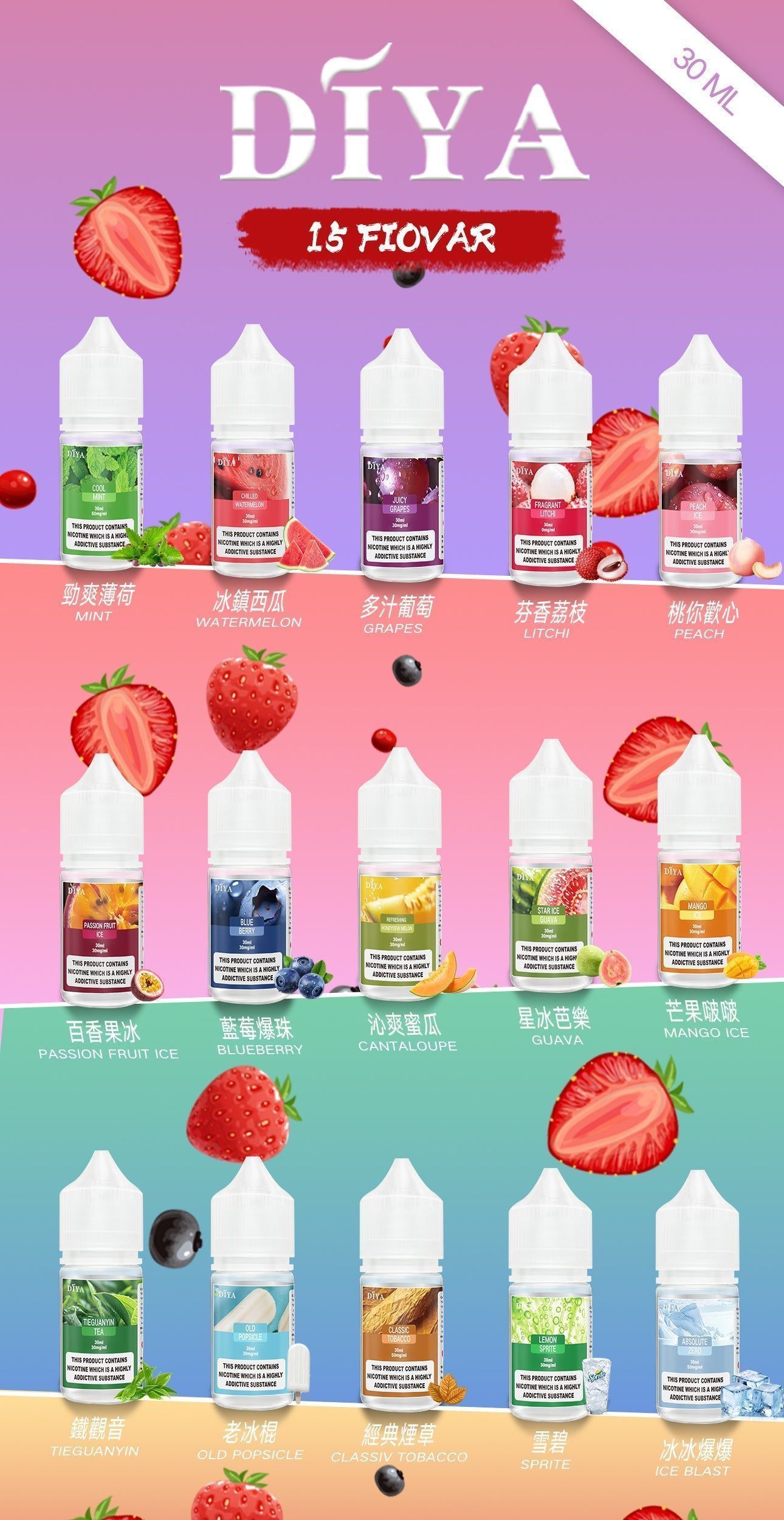 DIYA煙油|叮啞煙油 30ml 30mg|15種多樣化口味 高性價比食品級安全保障